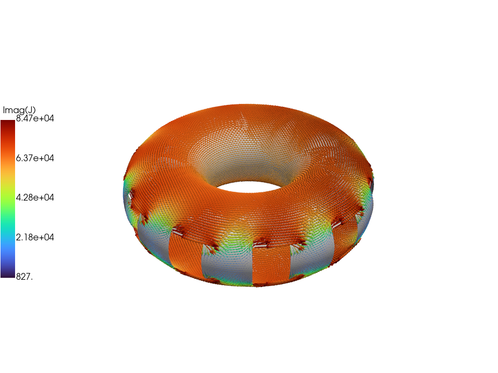 The resulting currents can be saved for plotting using tw_torus.save_current(). Here we save each of the five eigenvectors for visualization. Once all fields have been saved for plotting tw_torus.build_XDMF() to generate the XDMF descriptor files for plotting with VisIt of Paraview.