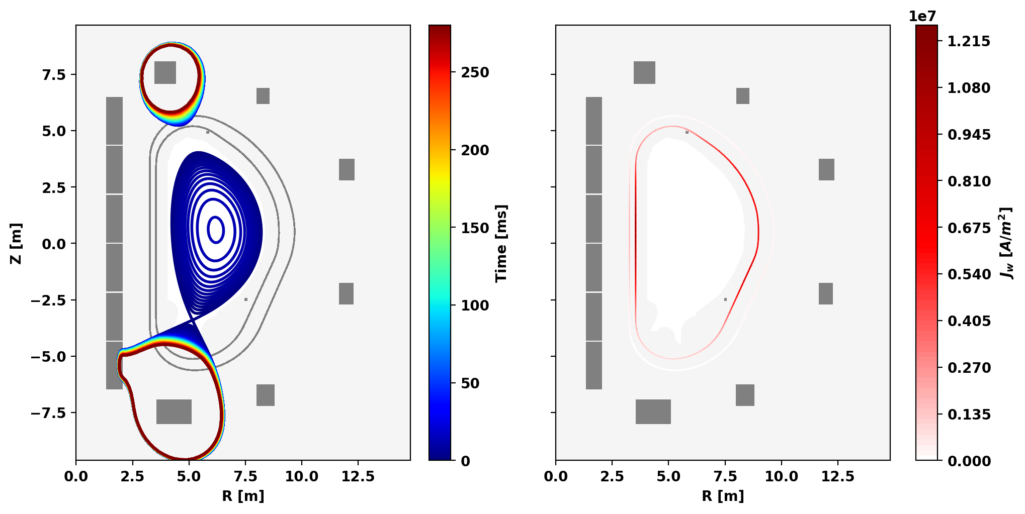 mygs.plot_psi(fig,ax[0],psi=psi,normalized=False,plasma_levels=[psi_lim],plasma_color=['0.5'],vacuum_levels=None,xpoint_color=None,opoint_color=None)