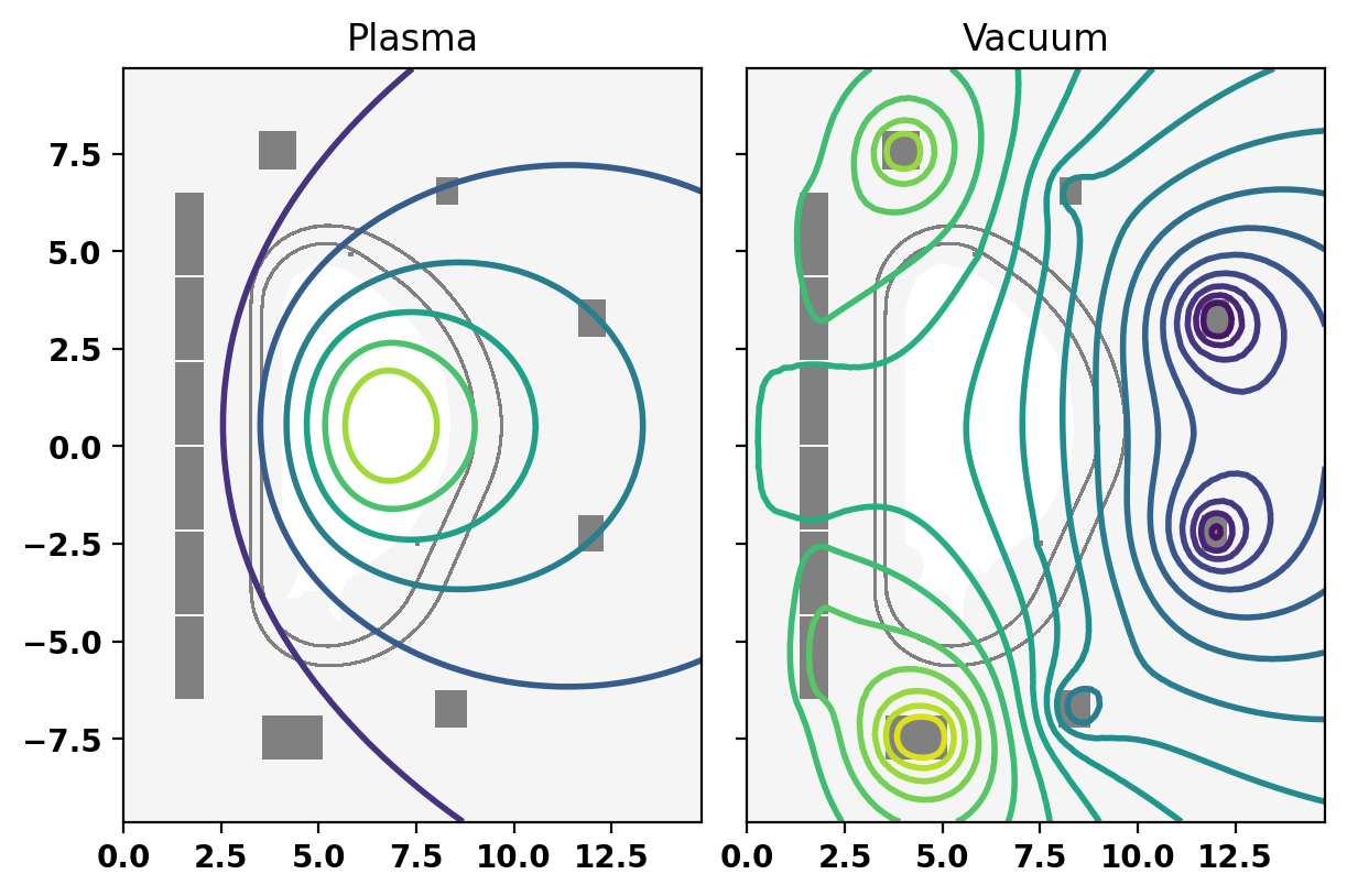 mygs.plot_psi(fig,ax[1],psi=psi,normalized=False,plasma_levels=[psi_lim],plasma_color=['0.5'],vacuum_levels=None,xpoint_color=None,opoint_color=None)