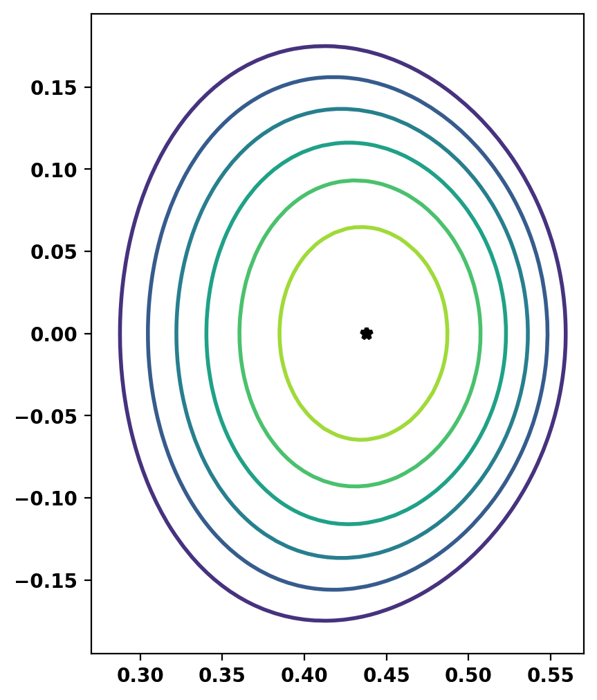 Flux surfaces can be plotted using the plot_psi method. Additional plotting methods are also available to display other information for more complex cases. See other examples and the documentation for more information.