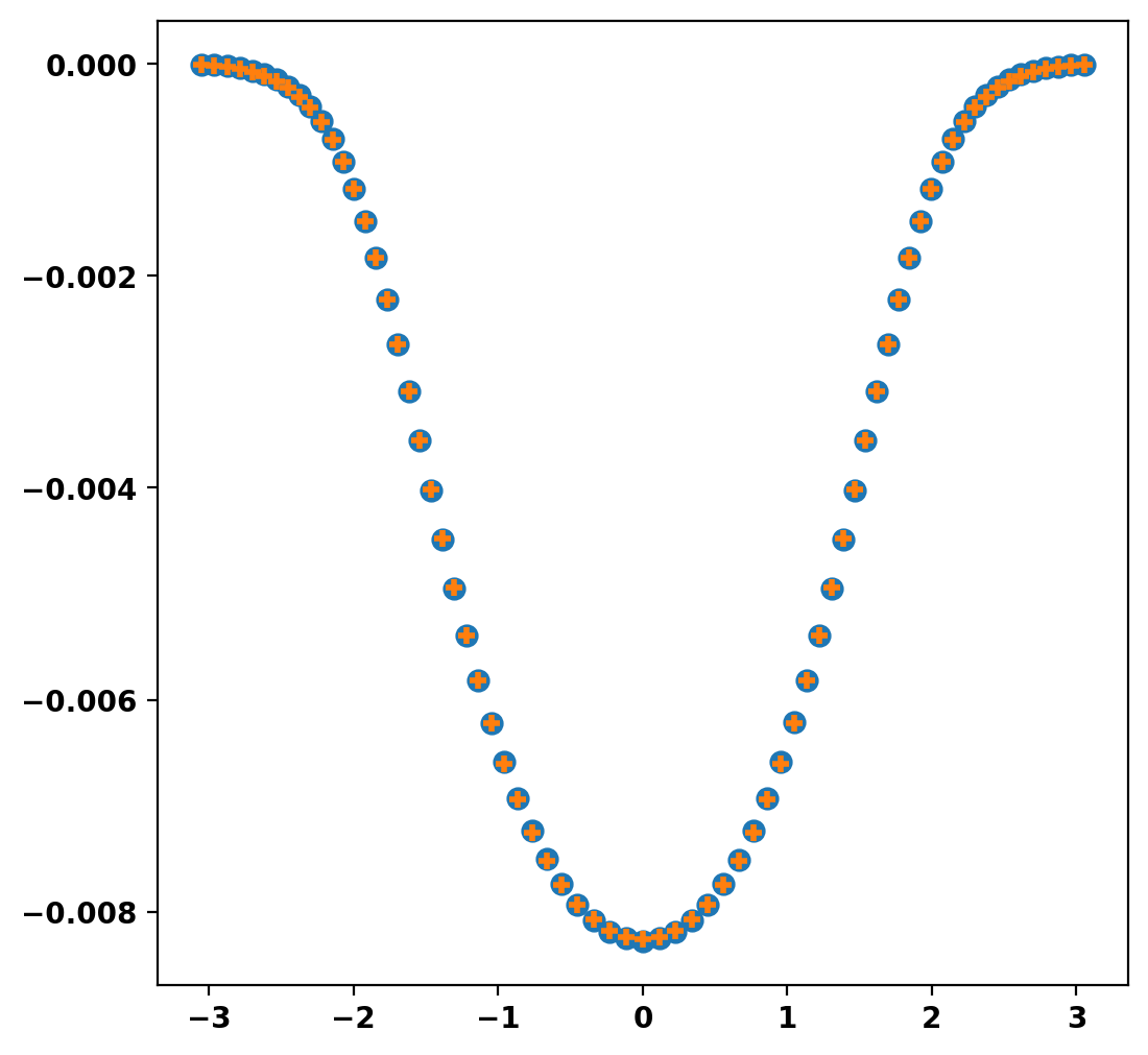 We now set the current in each coil to the currents computed by the least-square fit above. This is done using the set_coil_currents method, where currents are given in the total number of Amps flowing in the coil (also known as Amp-turns). The current is the same in each coil of a given coil set. Additionally, the current needs to be in the opposite direction as above.